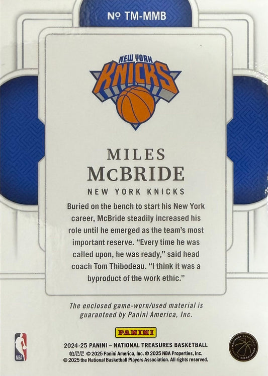 Miles McBride Game-Worn Patch Numbered /25 Panini National Treasures