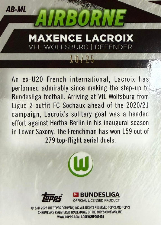 Maxence Lacroix Numbered /25 Airborne Topps Chrome Bundesliga